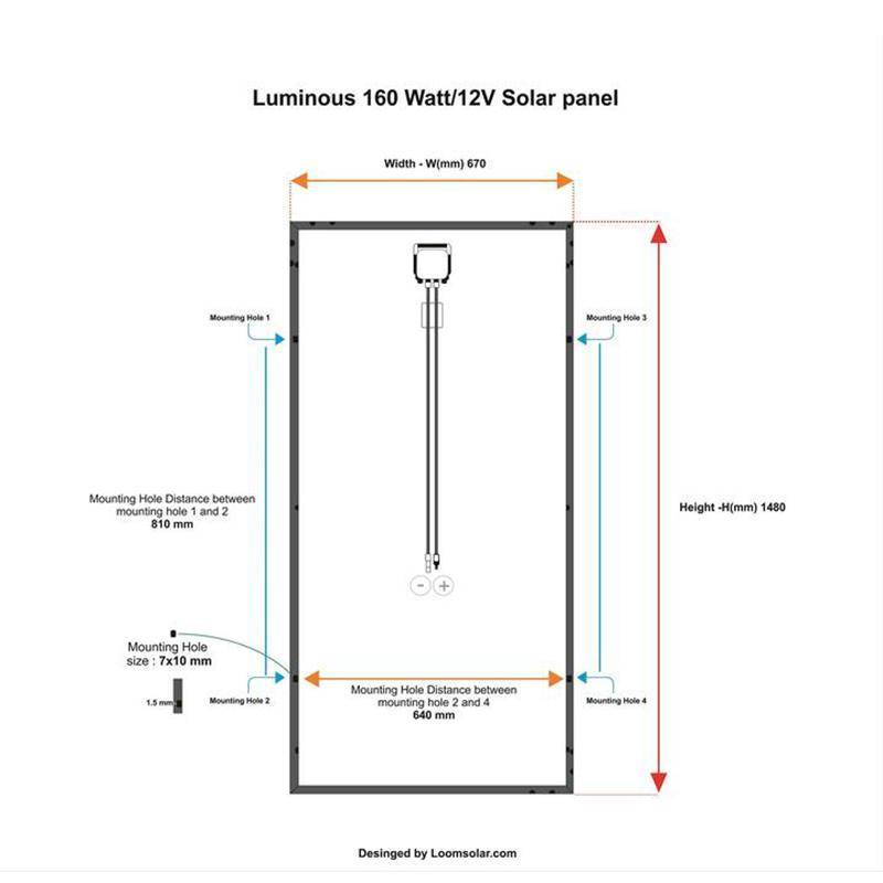 Luminous solar panel 165 Watt - 12 Volt is used to charge Lead Acid Tubular Battery. It can Charge the battery during the day between 9 am - 5 pm. 160 watt solar panel is highest capacity panel in 12 volt. if you have single battery based inverter, then it is must to buy 12 volt - 165 watt panel. it generates 8.7 amps current when sun is at peak. The dimension of solar panel is 4.8 feet * 2.1 feet (length * width)